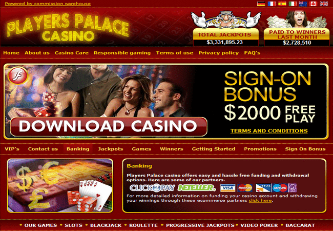 Banking Options at Players Palace CasinoPlayers Palace Casino don't make you jump through hoops whenever you wish to make either a deposit or withdraw your winnings, they offer a wide selection of very user friendly and secure e-cash options and below you will find those currently on offer to players: