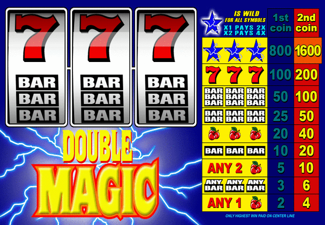 About the Double Magic SlotThe Double Magic slot a 3 reel slot game from Microgaming and as you can see it is built around a Classic slot game theme! The reel symbols include Single Bars, Cherries Double and Triple Bars as well as red, white and blue 7's and the jackpot symbol is of course the Blue Star symbol.
