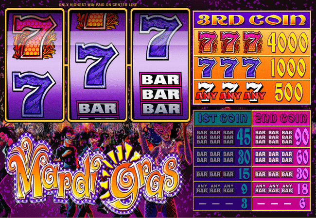 Mardi Gras - One of the newer 3 reel Microgaming slots with a jackpot of an impressive 4000 coins.