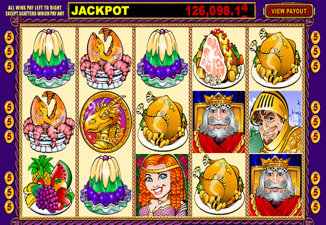 The reel symbols include Food Stuffs, a Princess, a Knight and the King Cashalot symbol which is the jackpot symbol and you need to get all five of them on activated pay line 9 to win the current live progressive jackpot.