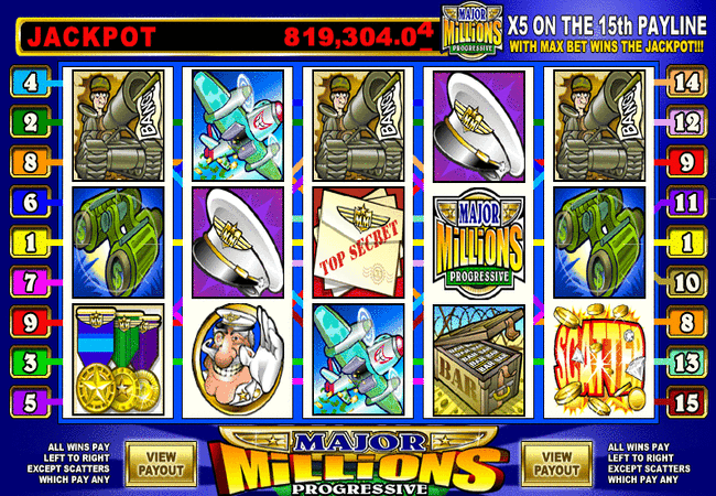 About the Major Millions 5 Reel SlotThe Major Millions 5 Reel slot has 5 reels and on this slot game you can play 15 lines on each spin you do not need to play all lines to be in which a chance of winning the progressive jackpot. This slot has a top prize that keeps on rising until won and the current value is displayed on the progressive slot meter.