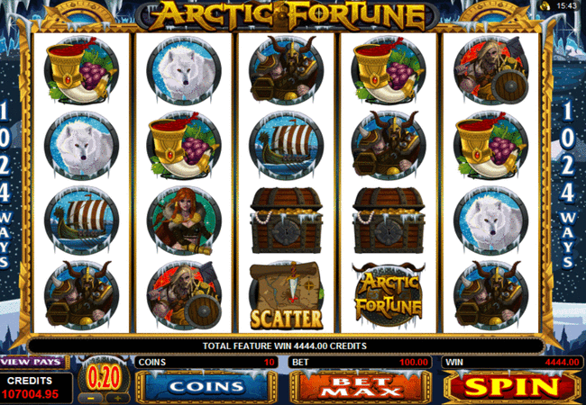 About the Arctic Fortune SlotThe Arctic Fortune slot has 5 reels and is a video slot game, you can play 1024 lines on each spin and you can play upto 500 coins per spin also. This slot has a top prize payout of 1500 coins and the theme of this slot is one of a cold Arctic backdrop.