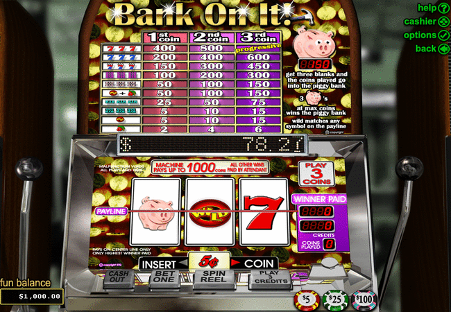 About the Bank On It SlotThe Bank On It Slot slot has 3 reels and on this slot game you can play 3 coins on each spin, the coin levels are set at $0.05, $0.25, $0.5, $1, $5 US based players are permitted to play at Real Time Gaming powered online casinos.