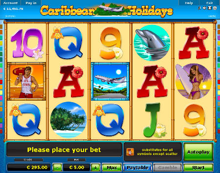 Caribbean Holidays slot machine is a vacation themed slot found in Star Games Casino. You will be able to kick off your shoes and relax when playing it, we cannot of course guarantee you lots of sunshine but what we can guarantee you is a great playing bonus video slot that could see you triggering what could turn out to be a very high paying bonus game by virtue of its free spins bonus round, so give it a try soon!