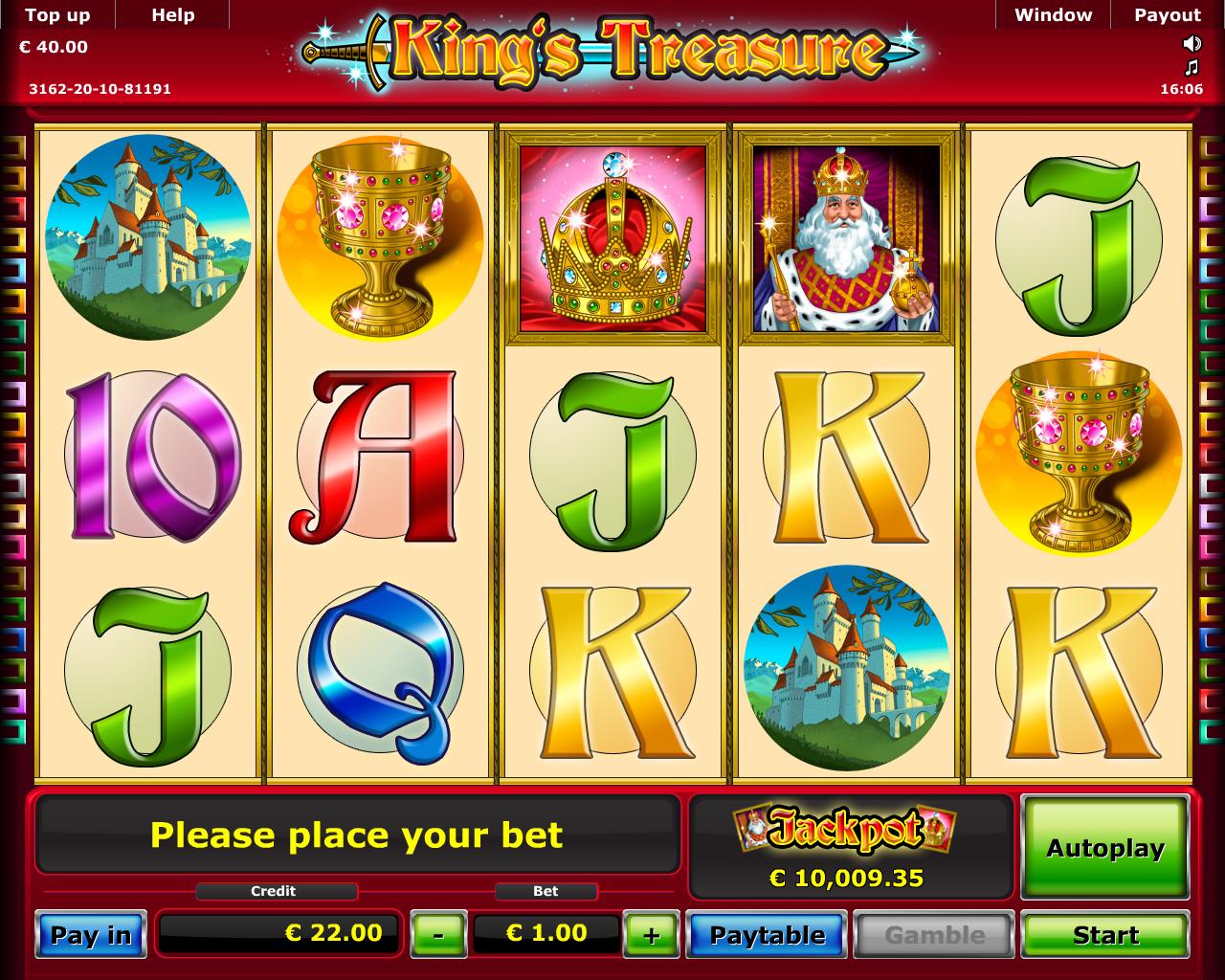 To also enable you to win bigger prizes on the base game should you spin in a winning combination the game will offer you a 50/50 gamble feature whereby you could double the value of that win. Best ways to play on the King's Treasure SlotUse the gamble feature sparingly as many players tend to gamble every win that spins in and this could be the quickest route to the soup kitchen! Try and only gamble when you are on a winning streak and only gamble occasionally just in case!